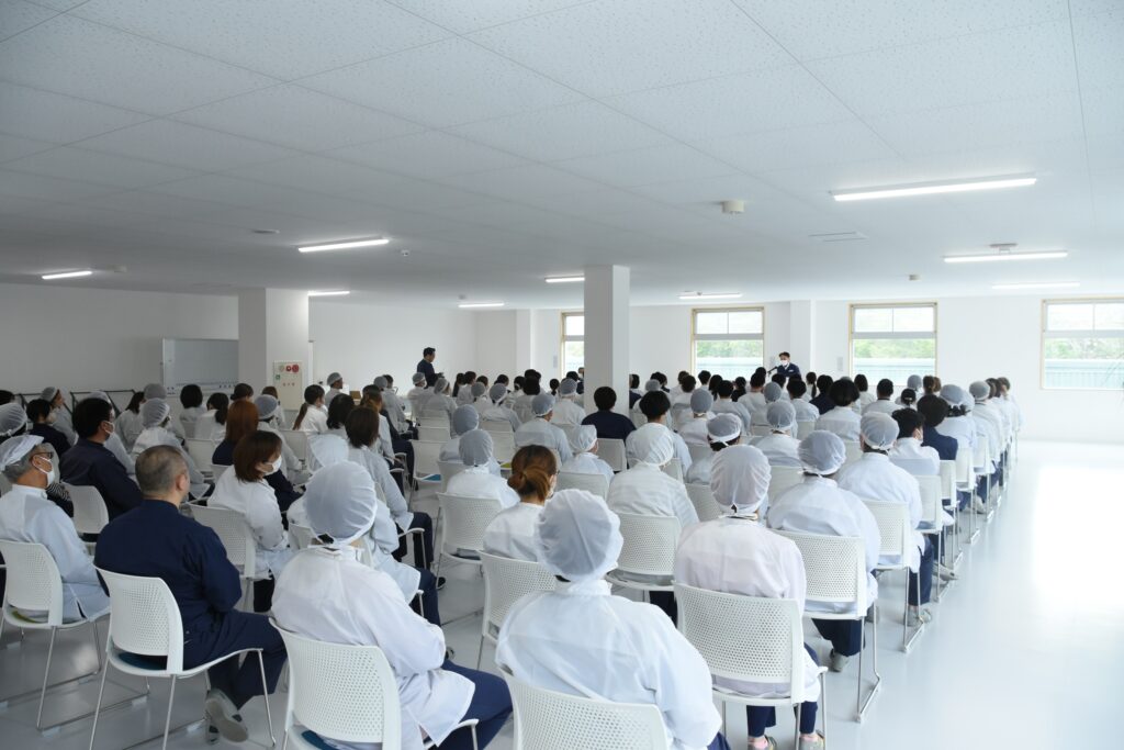 2026年4月1日(水)全社員が集まり全体朝礼が行われました。