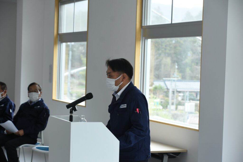 続いて勤続表彰、辞令交付(人事の発表)、荻原太一社長からは現状の受注状況や今後の見通しなどの話がありました。